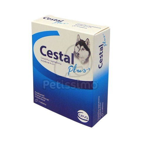 Cestal Plus rágótabletta kutyáknak A.U.V. 1. MINŐSÉGI ÉS MENNYISÉGI ÖSSZETÉTEL Minden rágótabletta tartalmaz:Hatóanyagok:- Prazikvantel 50 mg- Pirantel-embonát 144 mg- Fenbendazol 200 mg 2. GYÓGYSZERFORMA Rágótabletta. Barnás, ovális, osztható rágótabletta. 3. Célállat fajok Kutya. 4. Terápiás javallatok célállat fajonként Kutyák valamennyi jelentős bélféreg-fertőzöttségének kezelésére:- Galandférgesség: Echinococcus granulosus, Taenia spp,, Dipylidium ca