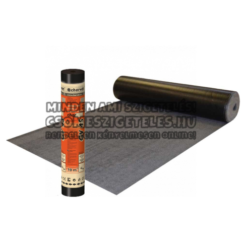 CharBIT GV 45 - Hagyományos hegeszthető oxidált bitumenes lemez üvegfátyol hordozóbetéttel. Felső rétege finom szemcséjű ásványi por (finom homok, palaliszt). Belsejében a két oxidált bitumenes réteg között üvegfátyol hordozóbetét helyezkedik el. A lemezt