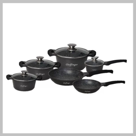 1 kép CHEFFINGER 10 RÉSZES TAPADÁSMENTES BEVONATÚ EDÉNYKÉSZLET CF-DA1010
