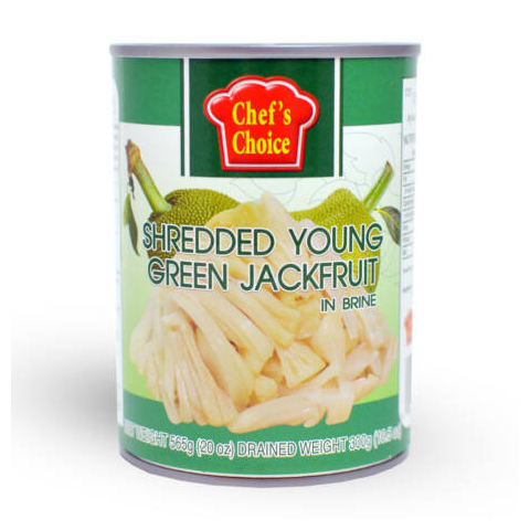 Chefs Choice jackfruit konzerv apróra vágott 565 g Összetevők: zöld jackfruit 54%, víz, só citromsav (E330) Hűvös, fényvédett helyen tárolandó. Felbontás után hűtőben tárolandó és legfeljebb 3 napig fogyasztaható. A jackfruit a húshelyettesítő konyha