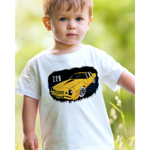 Chevrolet gyerek pólók, Chevrolet Camaro Z28. Egy igazi retro autó rajongónak kötelező viselet egy ilyen gyerek póló. Rendeld meg magadnak vagy egy olyan ismerősödnek, akinek születésnapja vagy névnapja van. Különböző méretű és színű pamut pólóra kérhető