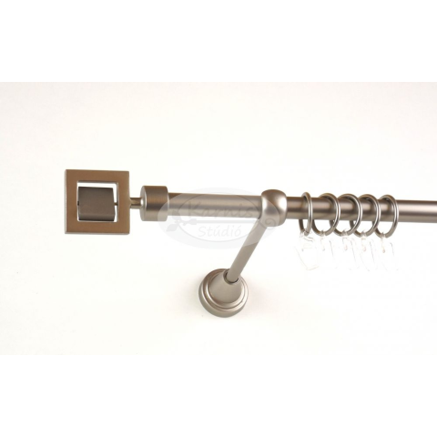 A CHICAGO 120 cm-es nikkel-matt színű 1 rudas fém karnis szett tartalma: 1 db 120 cm-es nikkel-matt színű 16 mm átmérőjű fém karnisrúd 2 db Chicago típusú nikkel-matt színű végzáró 2 db falra szerelhető fém konzol 12 db fém karika műanyag ráncszedő kampó