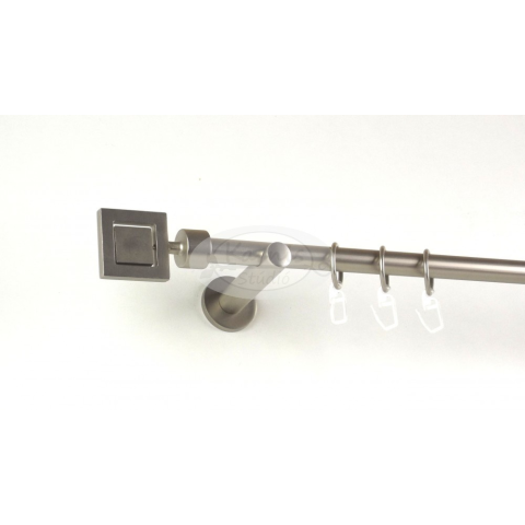 A CHICAGO 120 cm-es nikkel-matt színű 1 rudas, modern tartós fém karnis szett tartalma: 1 db 120 cm-es nikkel-matt színű 16 mm átmérőjű fém karnisrúd 2 db Chicago típusú nikkel-matt színű végzáró 2 db falra szerelhető modern fém konzol 12 db fém karika m