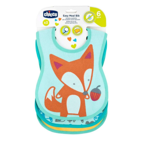 1 kép CHICCO Előke pamut vízálló róka 3 db, türkiz