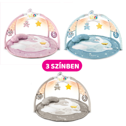 A Chicco játszószőnyeg projektorral egy igazán sokszínű, hangulatos játszószőnyeg, melyet újszülött kortól használhatsz. A félhold alakú projektor nappal zenél és színes fényekkel szórakoztat, éjszaka pedig éjszakai fényként szolgál kisbabád szobájában.