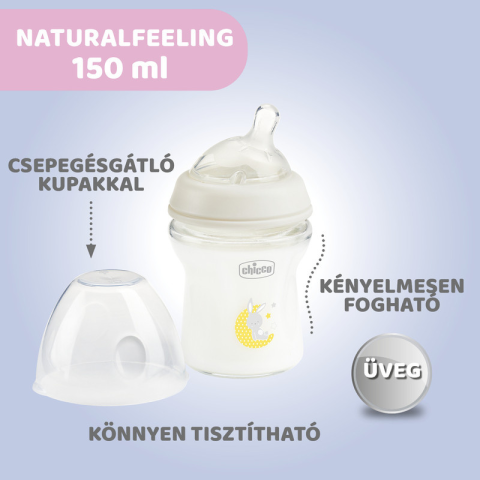 1 kép Chicco NaturalFeeling Üveg 150 ml cumisüveg újszülöttkorra normál folyású