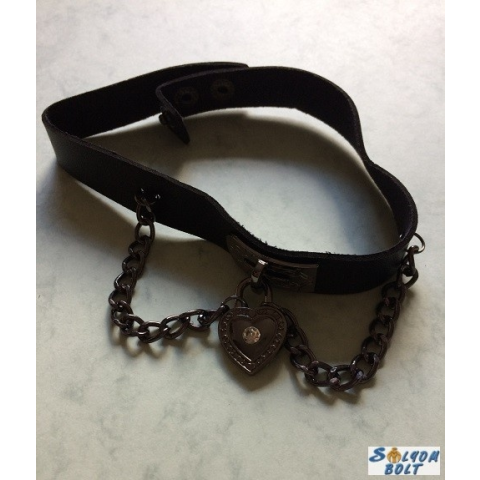 1 kép Choker nyaklánc fekete bőrből, fém szívvel, láncokkal