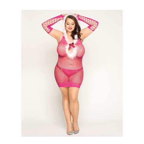 Christmas Girl -plus size.Rugalmas miniruha kapucnival,tollas díszítéssel.Tanga.Kesztyű.