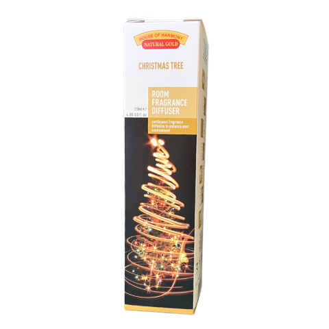 1 kép CHRISTMAS TREE (KARÁCSONYFA) ILLATOSÍTÓ DESIGNER DÍSZÜVEGGEL ÉS DEKORATÍV BAMBUSZPÁLCIKÁKKAL 120 ML