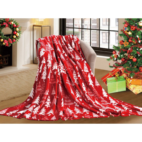 Teljes CHRISTMAS TREES piros karácsonyi mikroplüss takaró Méret: 160 x 200 cm termékleírás