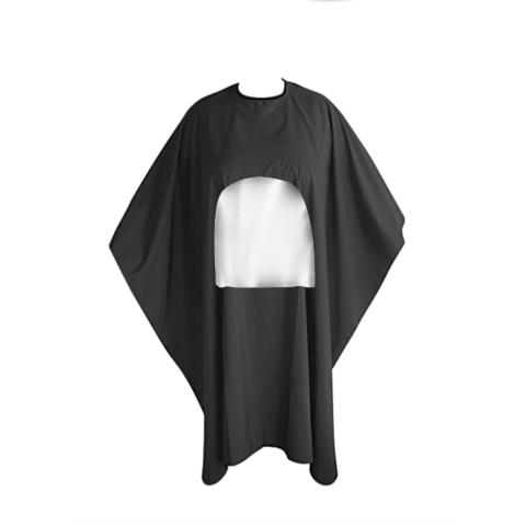 Chromwell ablakos beterítőkendő 40939 - Ablakos okos fekete színű hajvágó kendő - A vendég használni tudja telefonját vagy más digitális eszközét vagy akár könyvet, újságot is olvashat, amíg frizurája elkészül |en Chromwell ablakos beterítőkendő