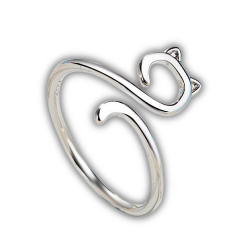 Állítható ezüst cicás gyűrű macskakedvelőknek. Tökéletes ajándék, amely egyedi és szerethető dizájnt kínál bármely alkalomra