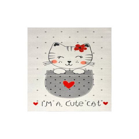 Cicás gyerekszőnyeg 80x120cmA Cicás gyerekszőnyeg kedves, bájos mintájával és vidám színeivel azonnal meghódítja a gyerekek szívét. A mosolygós cicás minta barátságos hangulatot teremt a gyerekszobában, miközben kényelmes és biztonságos játékfelületet biztosít.A szőnyeg 100% polipropilénből készült, amely strapabíró, puha és könnyen tisztítható anyag. Csúszásgátló hátoldala gondoskodik róla, hogy a szőnyeg stabilan a helyén maradjon, így a gyermek b