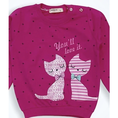 Nyomott mintás, kényelmes, hosszú ujjú lány pulóver, a 92-98 méret bal vállán gombokkal. Teljes hossz: 43 cm Ujjhossz (nyaktól): 48,5 cm Ujjhossz (varrástól): 41 cm Szélesség: 33 cm Márka: Breeze Származási ország: Törökország Anyag összetétel: 90 % pa