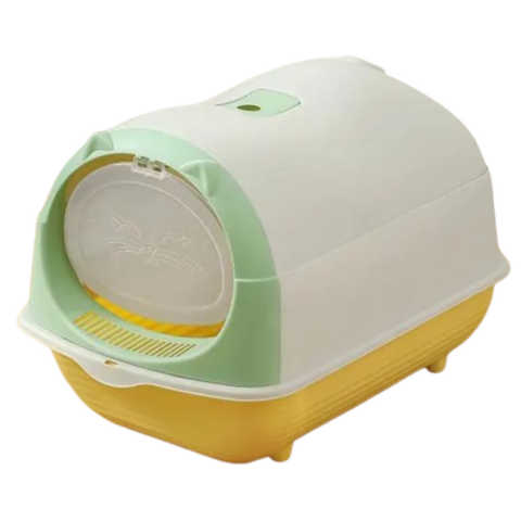1 kép Cicás Zárt Macska Alomtálca Szett, fehér-zöld-sárga