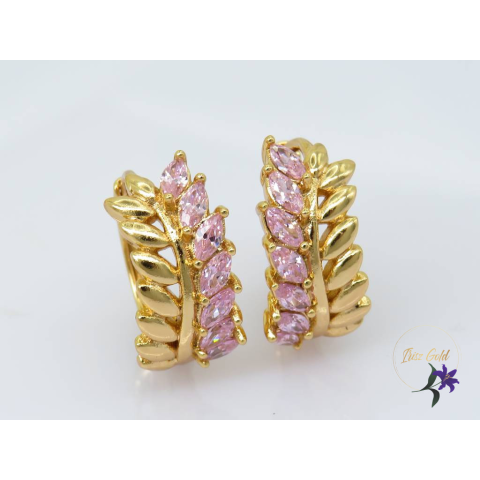1 kép Cinka antiallergén levélalakú fülbevaló rózsaszin kővel-18K