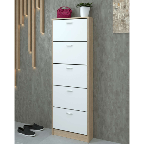 Teljes Cipősszekrény, 5 soros, sonoma tölgy/fehér, MOBI 15 termékleírás