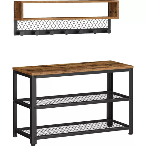 Teljes Cipőtároló pad + fali ruhaakasztó, rusztikus barna 30x73x45cm termékleírás