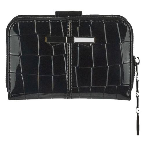 Körben cipzáros, plusz kihajtós fekete krokó mintás pénztárca masni dísszel