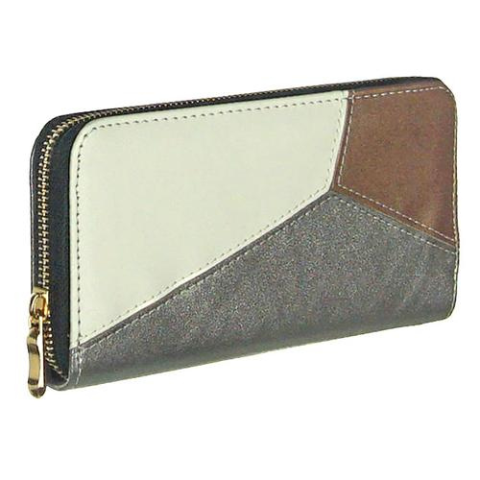 3 oldalán cipzáros ezüst alapon fehér és bronz betétes műbőr pénztárca
