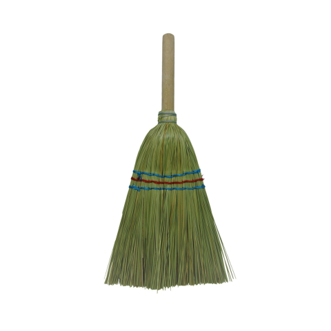 Praktikus kisméretű cirokseprű. Természetes anyagból készült, kisebb kül- és beltéri helyiségek tisztításához. A háromsoros varrás biztosítja a seprű tartós szerkezetet.