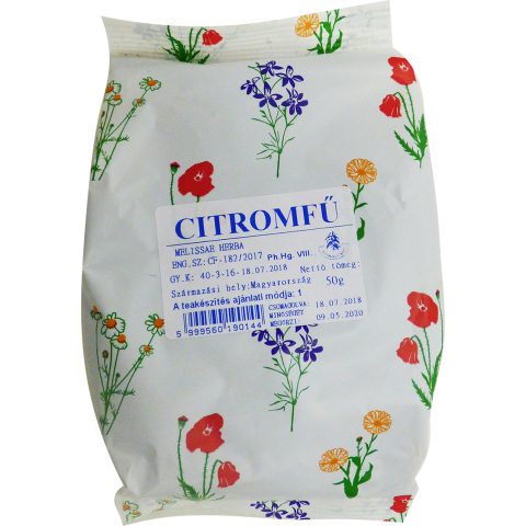 Gyógyfű Citromfű tea. Idegrendszeri eredetű gyomor- és bélpanaszokra, fejfájásra, idegrendszeri eredetű szívpanaszok esetén, görcsoldó, epehajtó, nyugtató hatás
