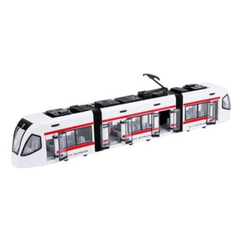 City Express villamos - fehér Szállítsd az utasokat a City Express fehér villamoson! A játék City Express villamos egy fehér városi tömegközlekedési eszköz, nyitható ajtókkal, valósághű hangokkal 1:43 méretarányban A City Express villamos modern külse