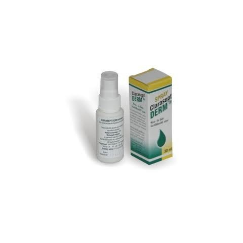 Clarasept Derm seb és bőrfertőtlenítő Clarasept Derm fertőtlenítő spray - 30ml Clarasept tulajdonságok: 60% alkoholok, 0,6% orto-fenil-fenol, tenzid, bőrápoló adalék, víz. Antimikrobiális spektrum: baktericid (MRSA), fungicid, tuberkulocid, virucid (H