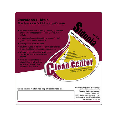 1 kép Clean Center Sidonia-matic I. fázis kísérőmatrica