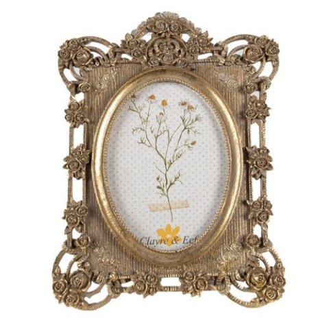 A(z) Arany színű rózsás képkeret 18x2x24cm, műanyag egy stílusos és igényes darab műanyag anyagból készült , mérete: Keret méret: 17x22cm . A termék a(z) Clayre & Eef márka kínálatából származik , eredeti származási helye: Hollandia.