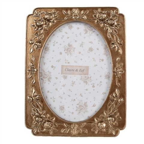 A(z) Arany rózsás képkeret 17x22/10x15cm, műanyag egy stílusos és igényes darab műanyag anyagból készült , mérete: Képkeret: 17x22cm . A termék a(z) Clayre & Eef márka kínálatából származik , eredeti származási helye: Hollandia.
