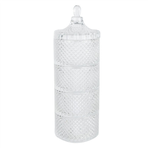 A(z) Üvegtároló 4 emeletes, 10x31cm egy stílusos és igényes darab üveg anyagból készült , mérete: 10x31cm . A termék a(z) Clayre & Eef márka kínálatából származik , eredeti származási helye: Hollandia.