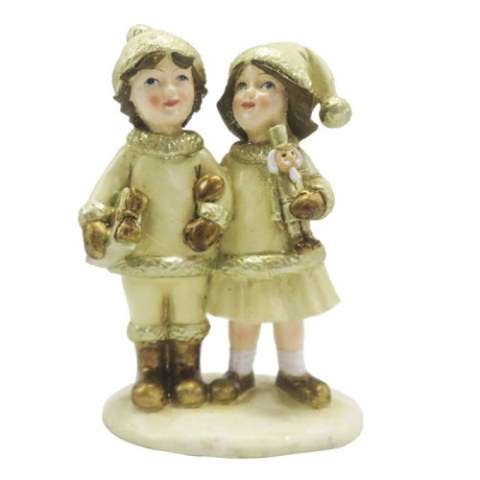 CLEEF.6PR4872 Kisfiú kislánnyal karonfogva 10x6x15cm, bézs-arany műanyag dekorfigura karácsonyi dekoráció 1 kép