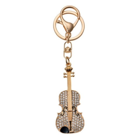 1 kép CLEEF.JZKC0135 Fém kulcstartó hegedűvel, ezüst színű üveggyönggyel