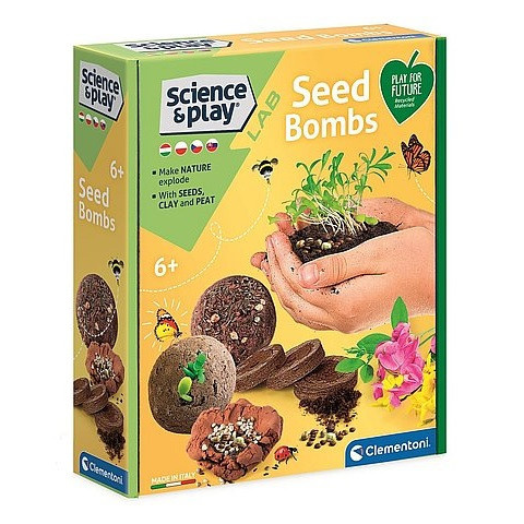 Clementoni Vetőmag bomba Ültess magokat tőzegbe! A Clementoni Vetőmag bomba agyagtéglákat, tőzegkorongokat tartalmaz, amibe különböző magokat tudsz ültetni, készíts egy vetőmag bombát A Clementoni Vetőmag bomba készletben magkeveréket találsz, amit ag