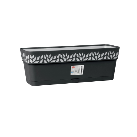 Mintás, műanyag balkonláda aljjal együtt, grafit színben.