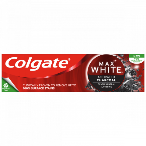 Fogfehérítő hatású fogkrém, Aktív szenet és ásványi anyagokat tartalmaz, Mindennapos használat esetén is kíméletes a fogzománchoz, Élvezze a magabiztosabb és ragyogóbb mosolyt A Colgate® Max White Charcoal fogfehérítő fogkrém aktív szenet és ásványi anyag