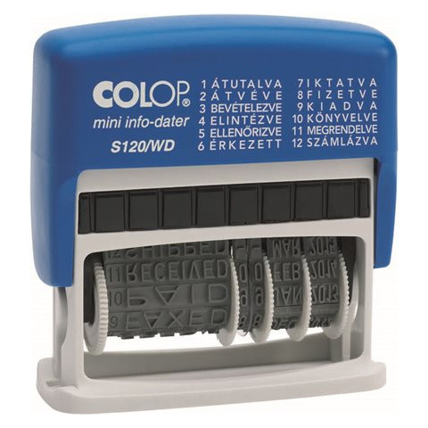 1 kép COLOP Dátum- és szövegbélyegző, 12 féle szöveggel, COLOP "S120/WD"