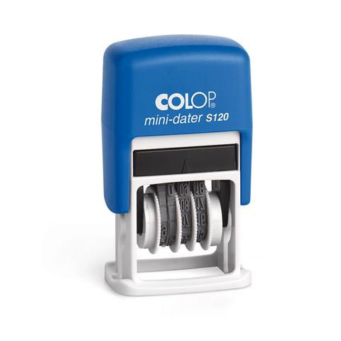 Dátumbélyegző, fordított, COLOP S120 - mérete: 68x23x46 mm - nap/hónap/év - hónap számmal jelölve - az évszalag 12 évig használható - karaktermagasság: 3,6 mm - élelmiszerek szavatosságának jelölésére - cserepárnája: E/10 Gyártó/első EU forgalma