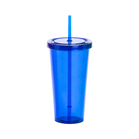 Átlátszó, színes műanyag pohár, megegyező színű fedéllel és szívószállal, 750 ml.