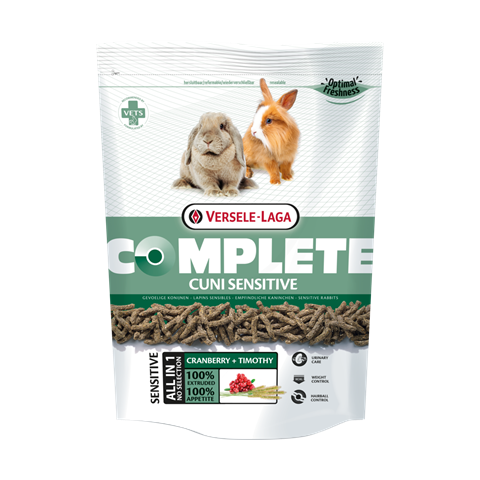 A Versele-Laga Complete Cuni Sensitive problémamentes táplálkozást jelent. A különösen ízletes, minden az egyben pelletek megelőzik a válogatási reflexet. Ilymódon nyula megkap minden létfontosságú tápanyagot és tökéletesen egészséges marad. Magas rosttartalmú táplálék, természetes hosszú rostokkal, megelőzi a szőrgombócok képződését és az elhízást. Az optimális kalciumtartalom és vör