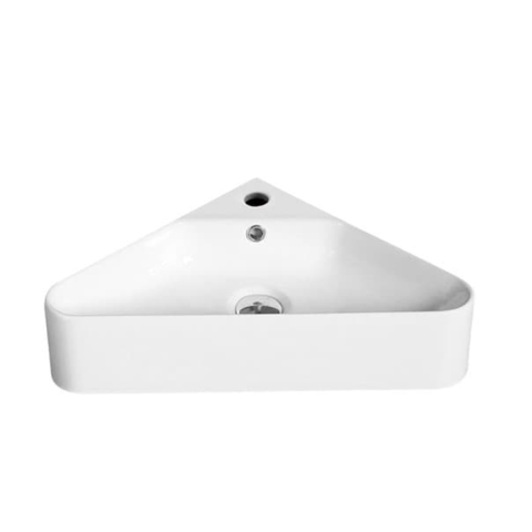 Rohové umývátko s otvorem pro baterii a přepadem o šířce 56 cm, hloubce 34 cm. Balení bez baterie a výpusti.