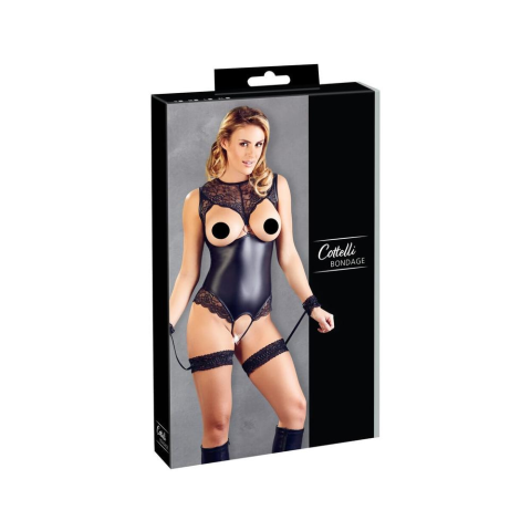 2 kép Cottelli Bondage - fényes nyitott body kézrögzítőkkel (fekete)