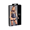 Lebilincselő fehérnemű és csuklóbilincs egy szexi body-ban, a kikötözős játékok kedvelőinek!