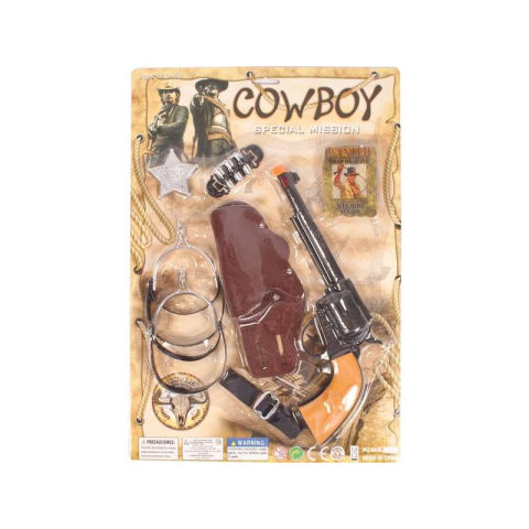 Egészítsd ki cowboy jelmezed látványos kiegészítőkkel! A Cowboy fegyver és kiegészítő készlet rengeteg eszközt tartalmaz, amivel még hatásosabbá teheted a cowboy vagy seriff jelmezed! Tűzd fel a csillagot és a töltényövet, erősítsd a bokáidra a sarkantyúkat, pisztolytáskába pedig tedd be a revolvered! A jelmez kiegészítők műanyagból készültek, bármilyen cowboy jelmezhez használhatók. Revolver mérete: 30 cm.