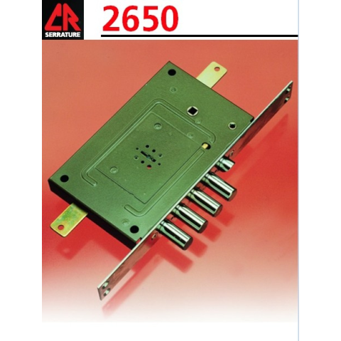 CR Serrature 2650/28 biztonsági zár kéttollú kulccsal 3db kulccsal. CR Serrature négy hengeres csappal záródó, bevésős biztonsági zár, rudazat használatával további záródási pontok érhetők el.