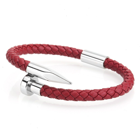 Crafted bőr karkötő vörös/ezüst karkötő 1 kép