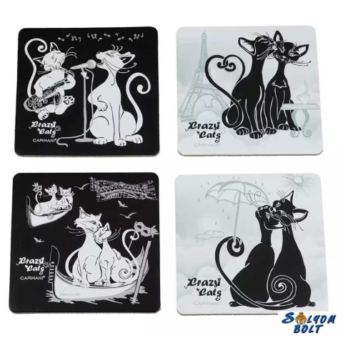 1 kép Crazy Cats fekete macska parafa poháralátét szett, 4 db-os