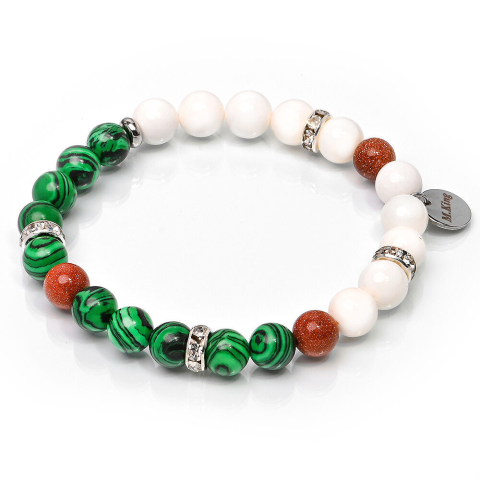 1 kép Crazy Nature – Kagyló, malachit és homokkő ásvány karkötő dobozban