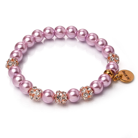 RUGALMAS KARKÖTŐ, a mérete választható.Az ékszer ásványai és tartozékai:– 8 mm-es pink szintetikus kagyló gyöngyök– Rose gold színű strasszos fémdíszek– M.King márkajelzésű nemesacél logóbiléta a csatnál– Technika: rugalmas